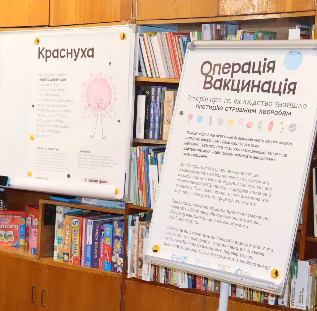 Експозицію розмістили в обласній бібліотеці для дітей. Відвідувачі зможуть оновити знання про вакцинацію та розвінчати популярні міфи. «Вакцинація є одним із найефективніших способів захисту здоров’я людини. Вона формує імунітет до небезпечних інфекцій, дозволяючи організму швидко розпізнавати й нейтралізувати збудників хвороб. Завдяки щепленням значно зменшується ризик важких ускладнень, інвалідності та смертності. Крім індивідуального захисту, вакцинація має суспільне значення: вона сприяє формуванню колективного імунітету, що захищає найбільш уразливих — дітей, людей похилого віку та осіб зі слабким імунітетом. Таким чином, вакцинація є не лише особистим вибором, а й важливим внеском у здоров’я всього суспільства», - зазначила завідувачка відділу імунопрофілактики обласного центру контролю та профілактики хвороб Марія Павельєва.