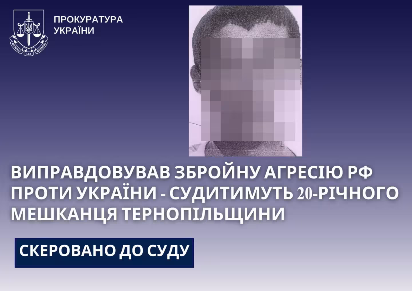Прокурори Тернопільської обласної прокуратури скерували до суду обвинувальний акт стосовно мешканця Чортківського району. Його обвинувачують у виправдовуванні збройної агресії рф проти України, розпочатої у 2014 році, з використанням засобів масової інформації