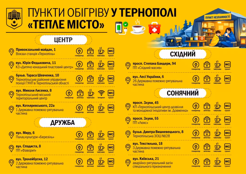 У Тернополі для мешканців та гостей громади підготовлено зручні паперові листівки з переліком пунктів обігріву «Тепле місто».