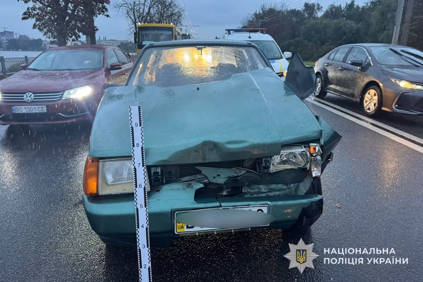 За попередніми даними, водій автомобіля марки «ЗАЗ» не дотримався безпечної дистанції та допустив зіткнення із мікроавтобусом, котрий рухався попереду. Водій останнього в’їхав у легковик Cіtroen.