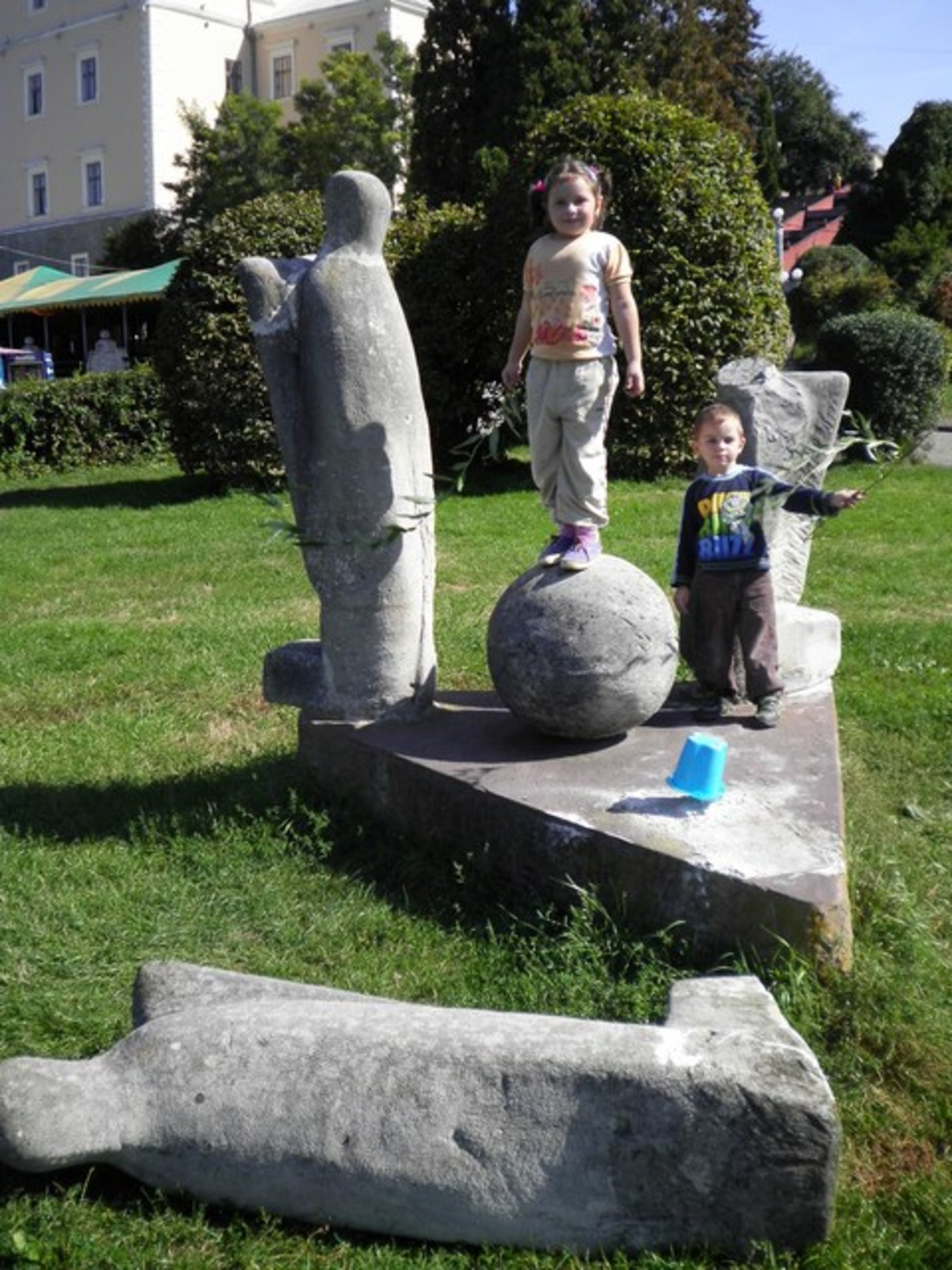 – Дітям подобається гратися біля скульптур, вони уявляють себе переможцями якогось бою. Адже скульптура розвалена. Складається враження, що тут було якесь варварське плем’я, - пише чоловік.