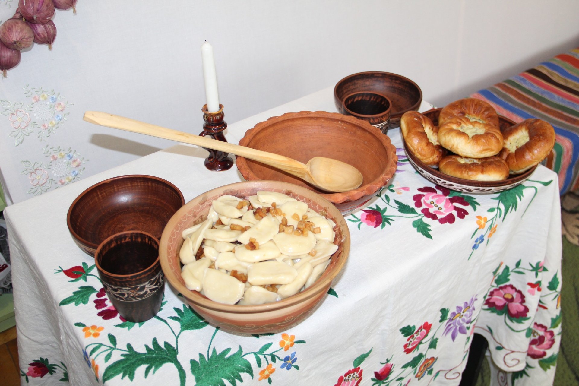 Вишиті на рушнику QR-коди дають доступ до рецептів традиційних українських страв із проекту «Старосвітська кухня України», реалізованого Національним музеєм народної архітектури та побуту України за підтримки Благодійного фонду «МХП-Громаді». Результатом цієї ініціативи стали ілюстрована книга з автентичними й адаптованими до сучасності рецептами та 12 відеосерій «Смакуй з Енеїдою» із покроковими приготуваннями страв, згаданими в творі Івана Котляревського.