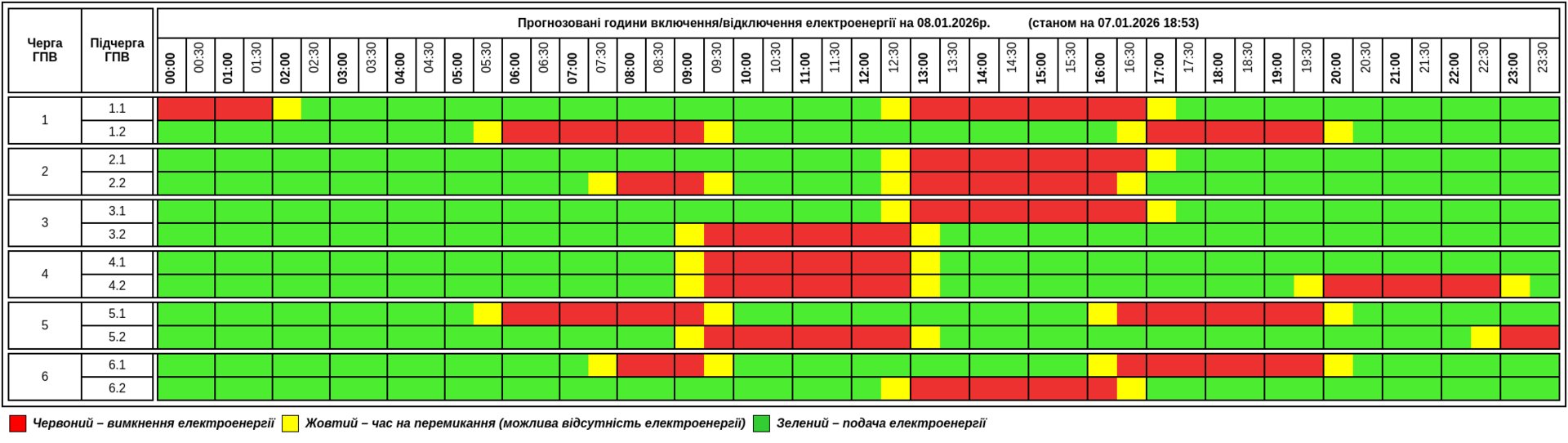 Енергетики пропонують традиційно шість черг, в кожній з яких є дві підчерги.