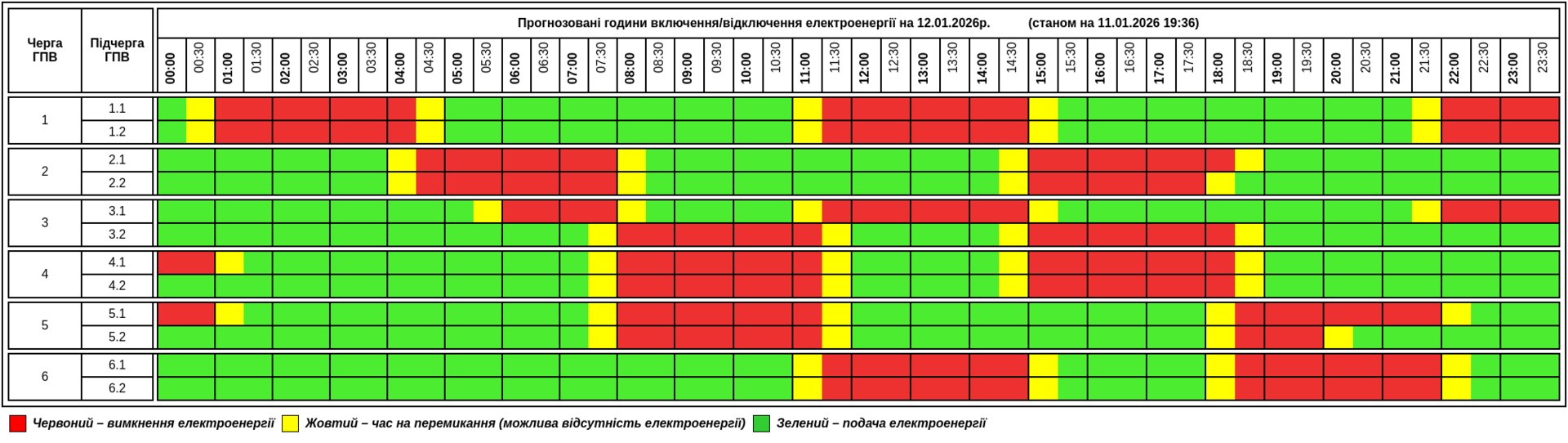 Енергетики пропонують традиційно шість черг, в кожній з яких є дві підчерги. В домівках жителів Тернопільщини світла не буде в середньому по 2 рази по 3,5-4 години.