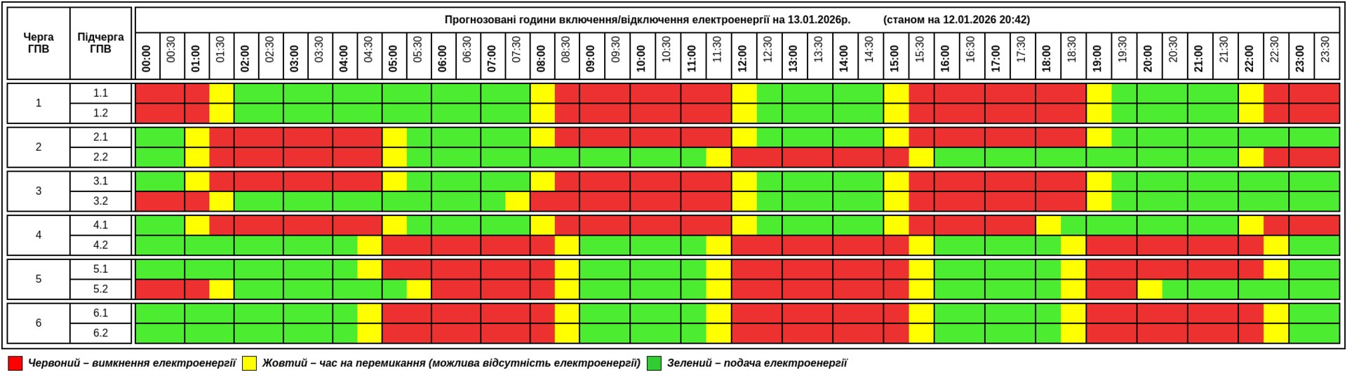 Енергетики пропонують традиційно шість черг, в кожній з яких є дві підчерги. В домівках жителів Тернопільщини світла не буде в середньому по 3 рази по 3,5-4 години.