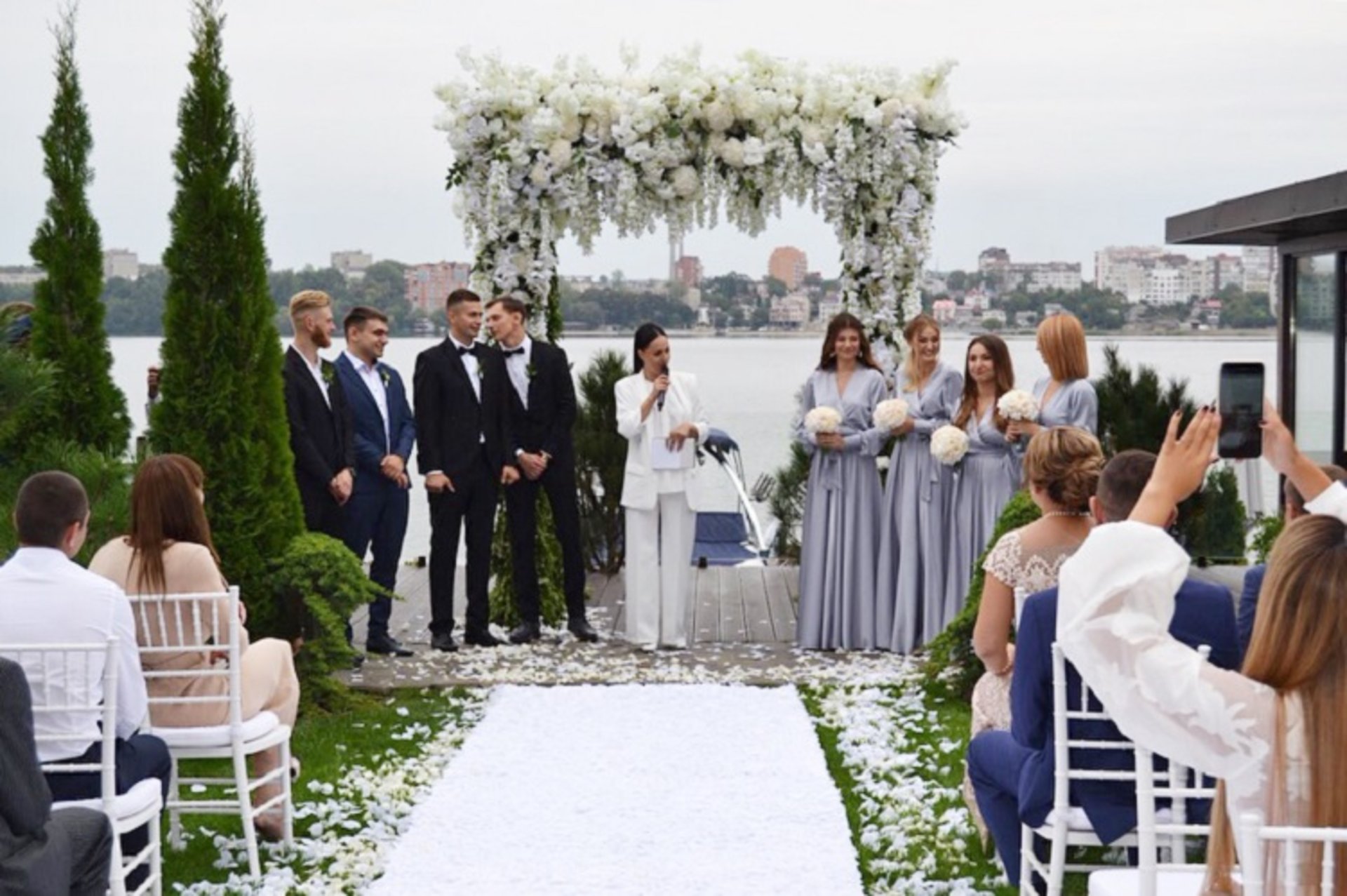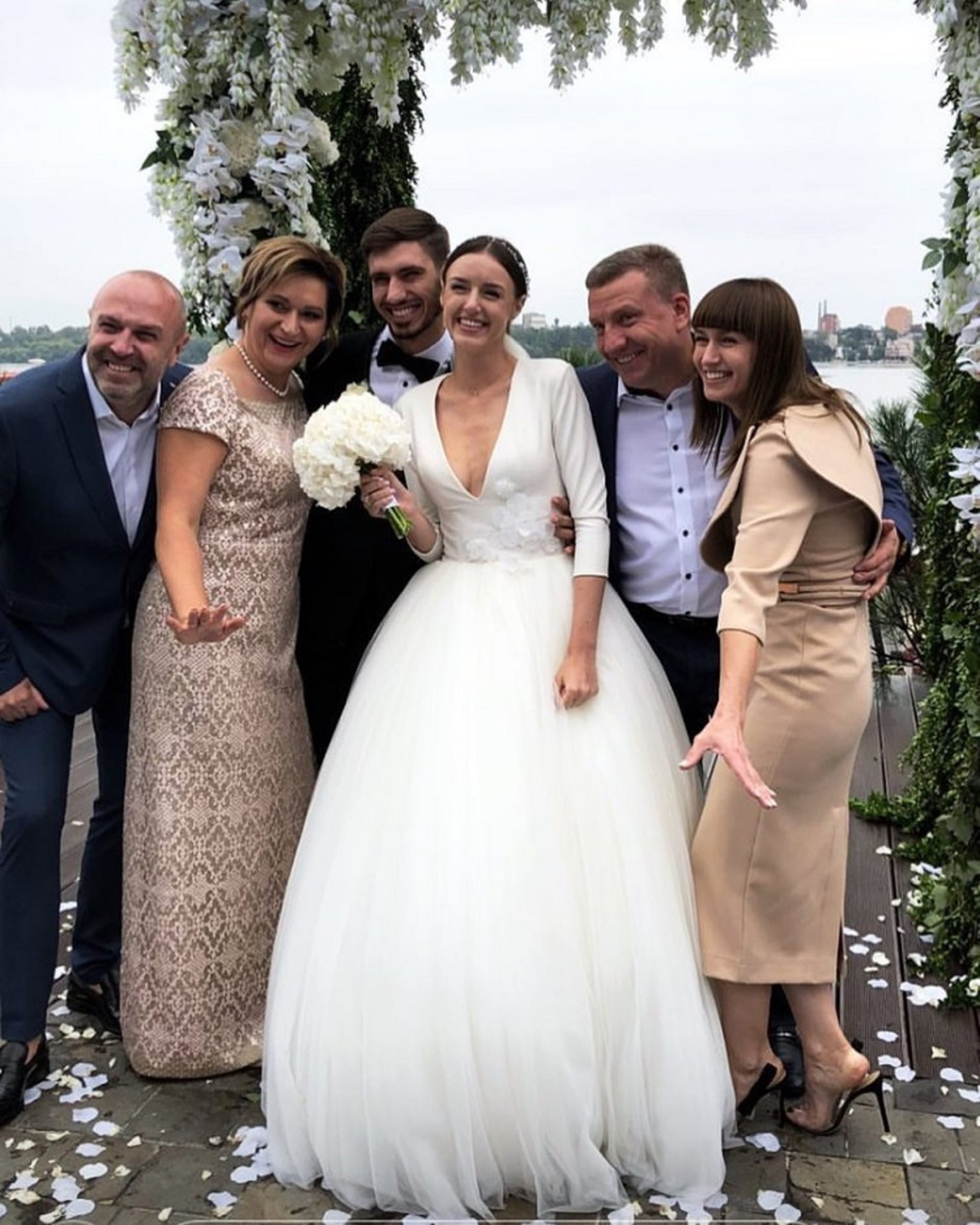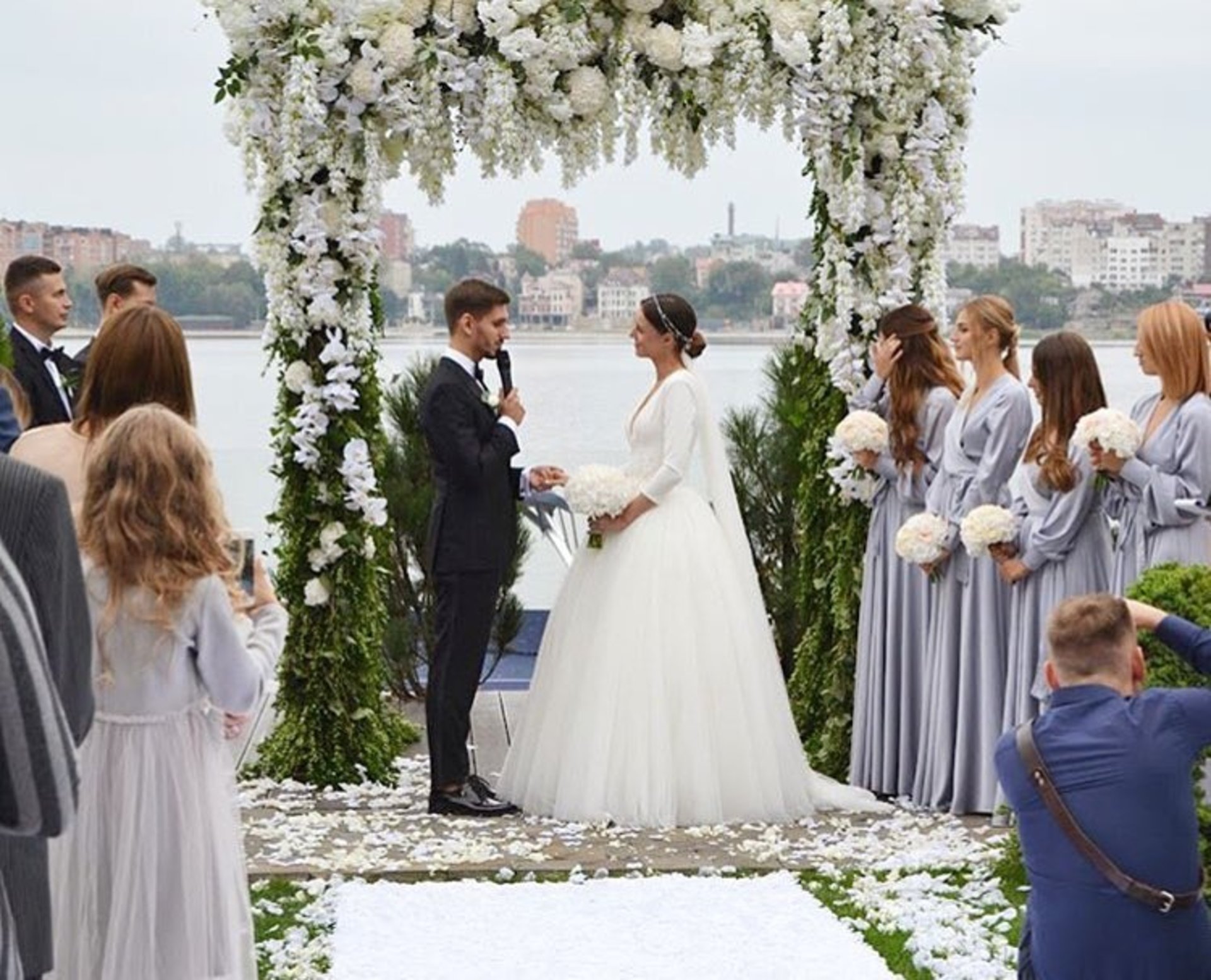 Розписалися молодята у четвер, а саме весілля відбулося в суботу. Розпочалося воно церемонією вінчання, що пройшла на березі тернопільського ставу. Банкет відбувся у нещодавно відкритому ресторані "На небі".