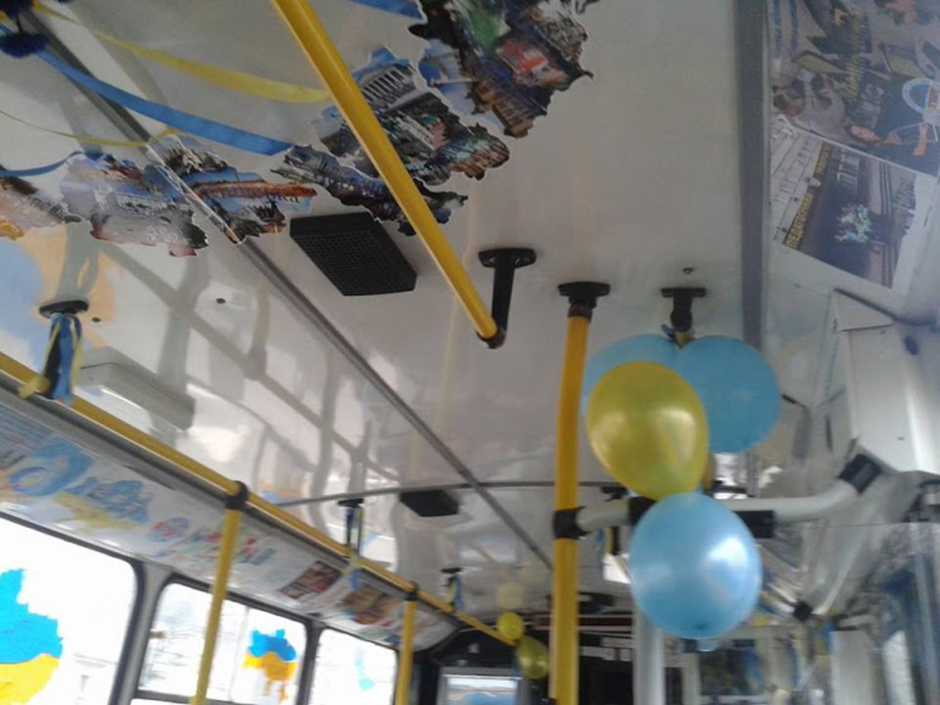 Тернополем їздить патріотичний тролейбус із синьо-жовтими кульками та вінком із квітів.