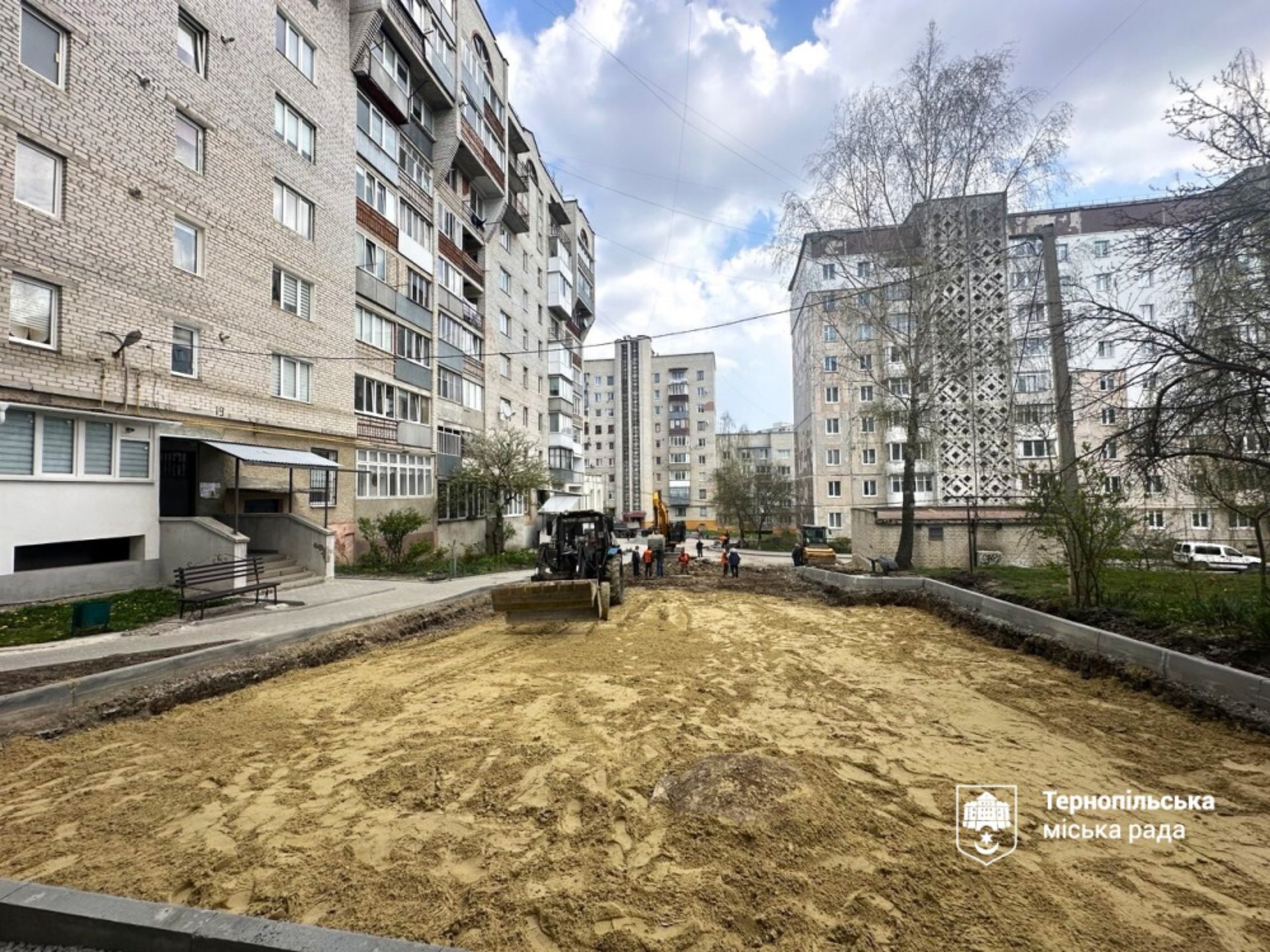 Роботи виконуються і в дворах на вул. Лесі Українки, 33, де облаштовують основу дороги та технічних приямків, і на вул. Лесі Українки, 19, де цими днями заплановано формування основи під тротуар.