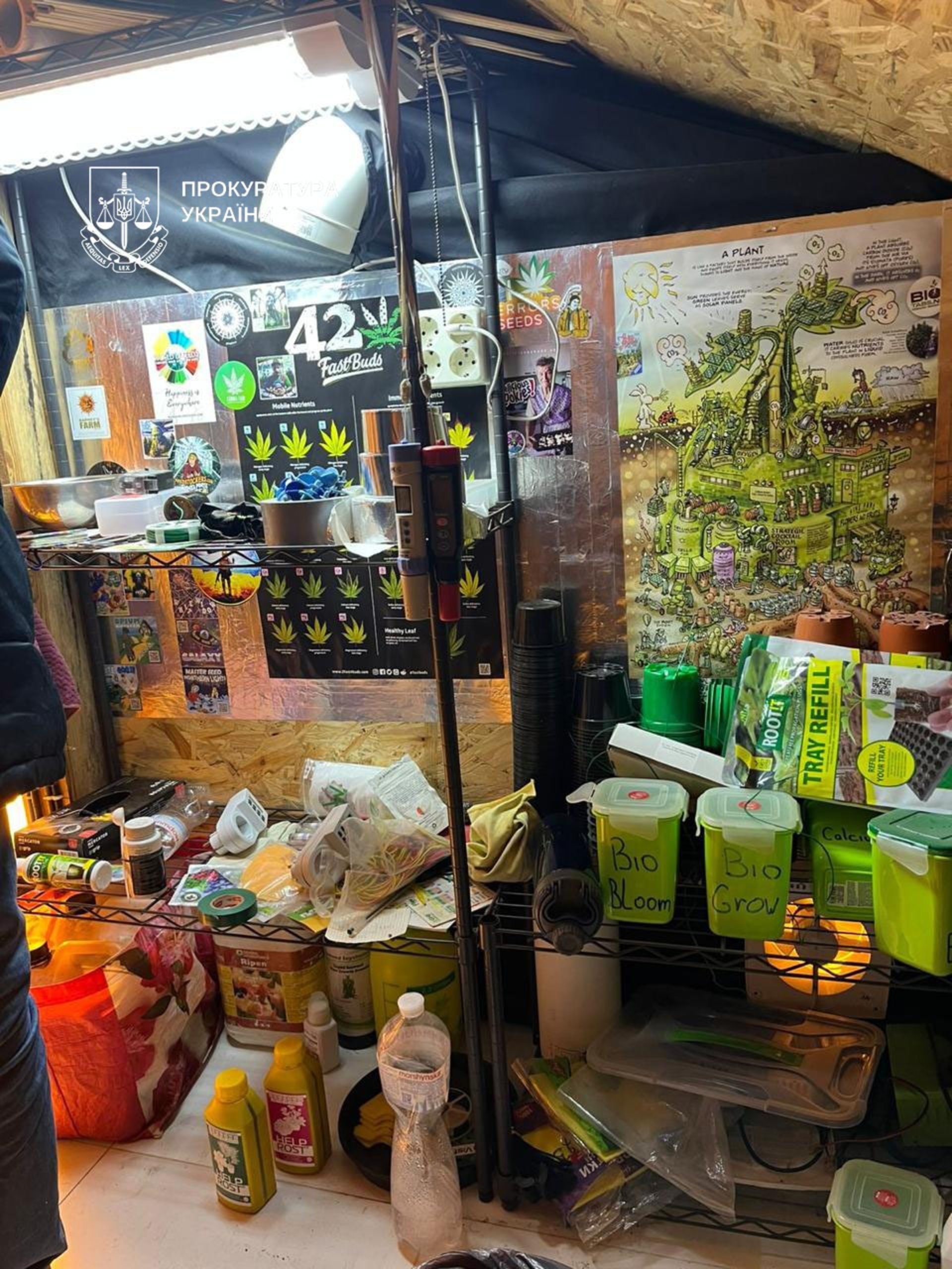 Під час проведення обшуків у підозрюваних вилучено близько 750 грамів канабісу, 50 кексів із вмістом ТГК, кратом, 50 грамів псилоцибінових грибів, понад 37 тисяч гривень у національній та іноземній валюті, лабораторне обладнання та засоби зв’язку.