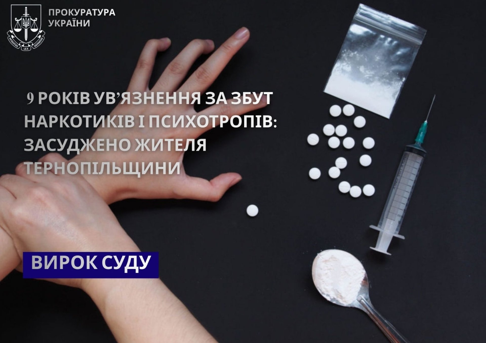 Прокурор Бережанської окружної прокуратури довів у Підгаєцькому районному суді, що обвинувачений з метою отримання грошових коштів та особистого збагачення займався збутом особливо небезпечних психотропних речовин особам, схильним до їх вживання. В судовому засіданні свою вину визнав повністю.